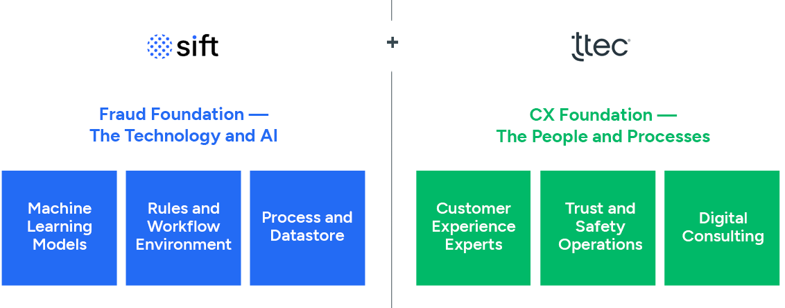 Fighting fraud requires a layered approach that combines the speed, accuracy, and proficiency brands expect with the ROI they need. That’s why we’ve partnered with Sift, an industry leader in AI-enhanced anti-fraud technology, to complement TTEC’s customer experience expertise.